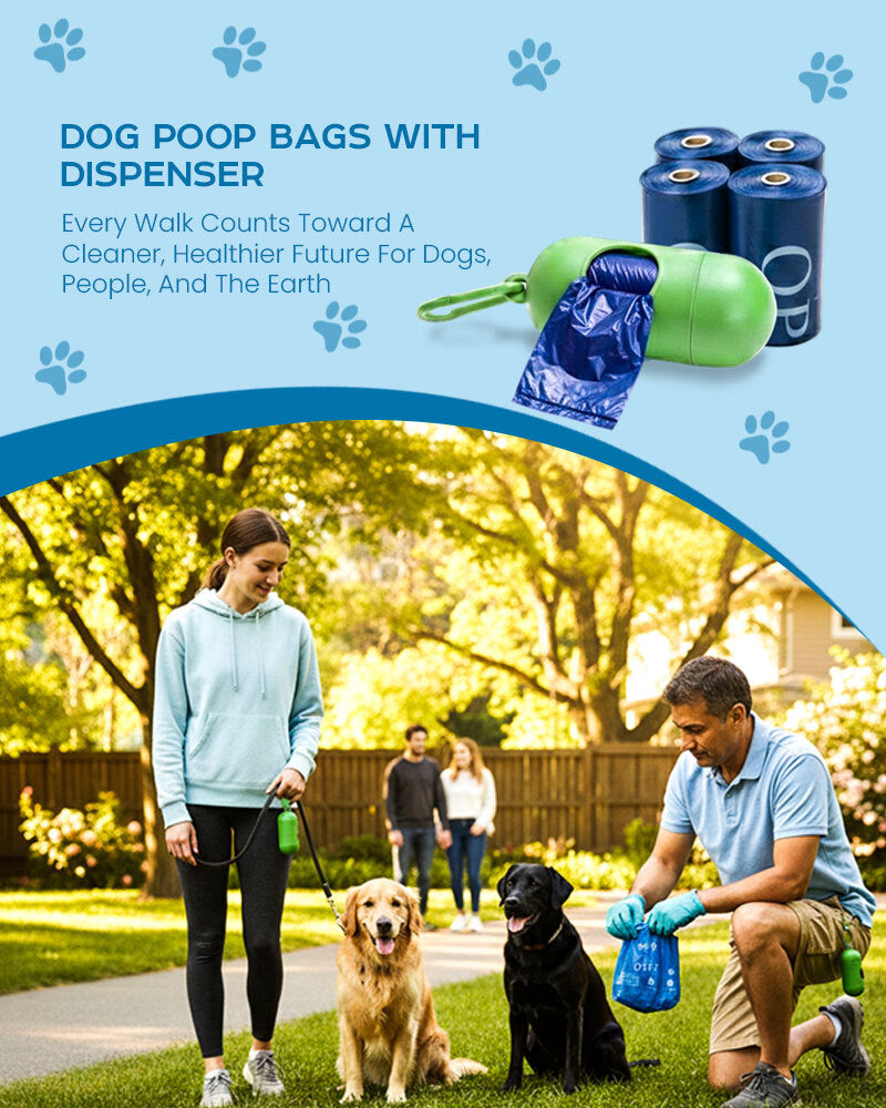 Compostable Poop bags, eco-friendly dog waste bags are made from recycled materials and come with a durable dispenser, making it easy to reduce waste on every walk.